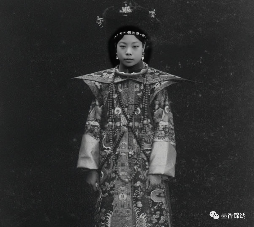 1922年时期,文绣身穿朝服时的留影肖像。其实晚清皇帝溥仪当年挑选皇后时,心中第一属意之人便是文绣。后来溥仪在自传中特意概述了此事:其实当时也没有思考什么终身大事,年轻所至,也无甚标准,只觉在百张照片中,唯她最为顺眼满意,于是用铅笔在她的照片上画了一个圈。