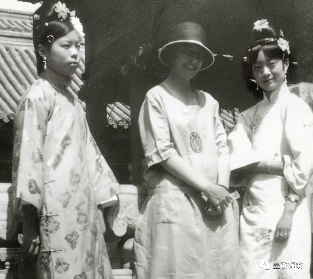 文绣与婉容及外国英文教师的合影旧照。文绣年轻时相貌生得还算清秀美丽,与皇帝溥仪感情相处亦算是深情有加。奈何后来频频与皇后婉容争风吃醋,时常为一些小事龃龉不断。得不到爱情的文绣失望至极,再加上溥仪弃民族气节不顾,此举更是让文绣绝望无指。