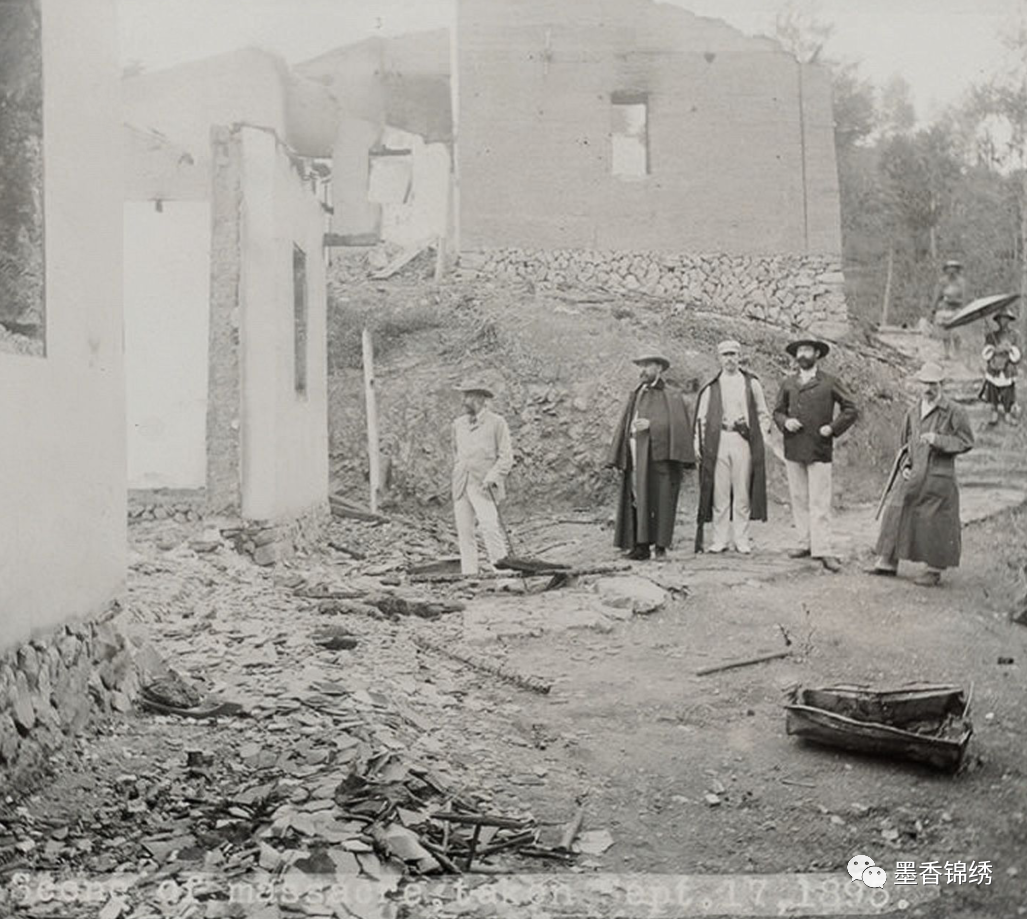 晚清时期的“古田教案”中,其英美两国的领事大臣前往案发现场调查时留影旧照。此事起因为福建当地一个名为“斋会”的民间组织。于晚清1895年8月1日,“斋会”成员之众因怀疑英美两国的传教士向地方官府告发其不法行为,于是聚集大批会众到古田英美传教士的聚居区华山围攻。其冲突爆发后,“斋会”的会众用非人道的手法杀害了英国传教士11人,打伤致残5人,临走前还烧毁了传教士所居的房屋两幢。