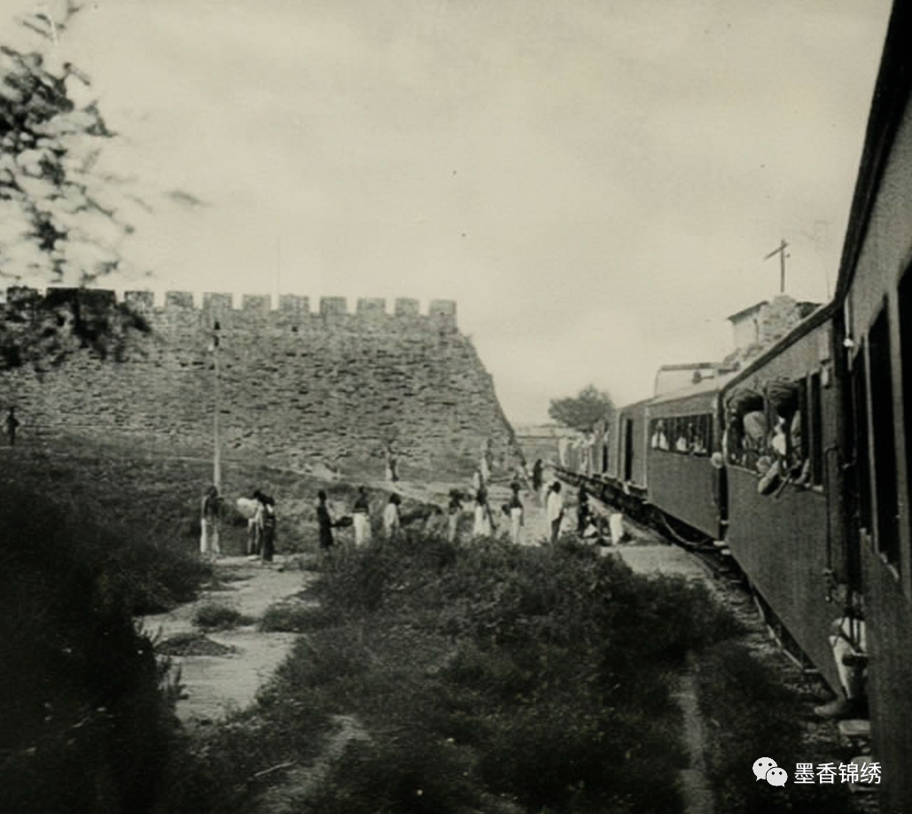 晚清时期的北京城内火车途径此地的罕见旧照。据悉当年八国联军攻进北京城后,城内的天坛居然成了这些窃贼列强们的兵营。当时八国联军为了运输其战争时的军用物资,不但擅自将卢汉铁路从卢沟桥扩展至北京城内的正阳门,而且还在京城里的永定门一带的城墙开了洞,以便其物资方便运送。
