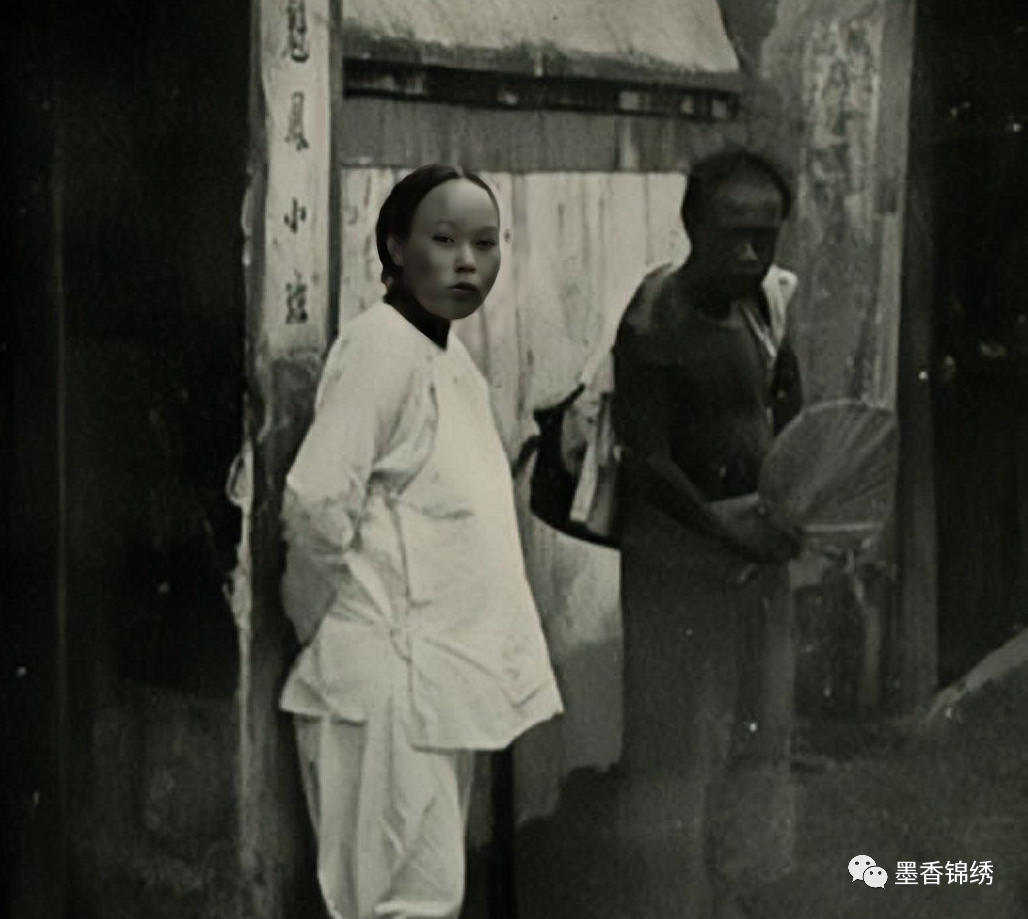 晚清年间京城里一个年轻的青楼女子在门口站街拉客时的真实留影,世人皆知古时候的风尘女子皆是出身于贫苦人家,或是家道中落的千金小姐遇到难事走投无路,否则又有哪个清白女子愿意自甘堕落到这风尘之地。