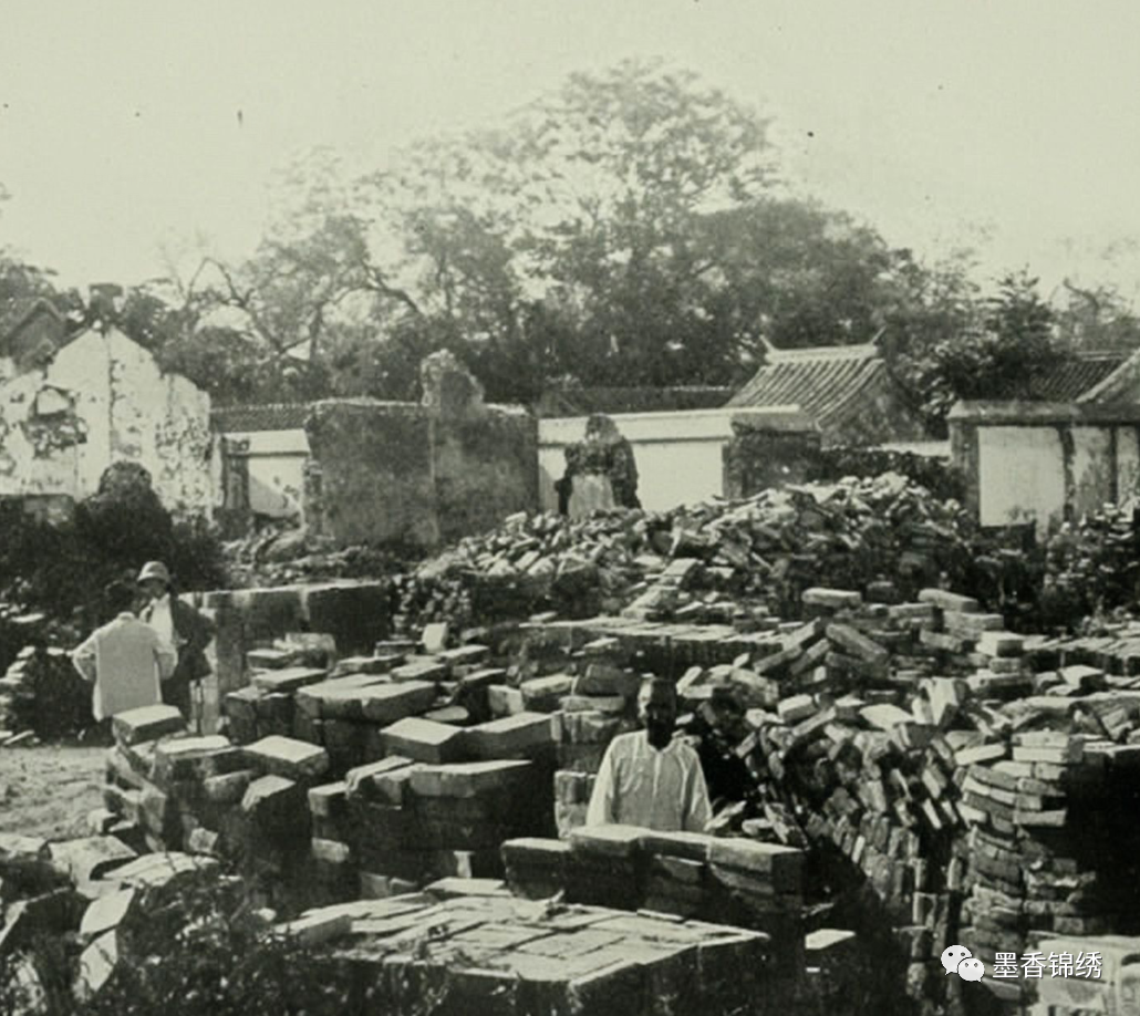 晚清时期老北京城内的外国公使馆,在庚子事变中遭遇炮火摧毁后留影旧照。其实熟读历史的文者,皆知当年那场惨绝人寰的历史大事件有多么苦。而这张老照片中亦是不难看出满大街到处都是被摧毁的房屋与断壁残垣,就连京城里的前门城楼亦是被炸成废墟。