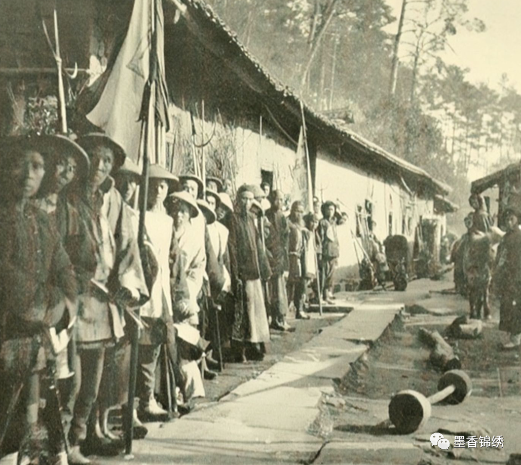 晚清时期的湖南百姓们与兵丁合影旧照,站在最前面的两人便是衙门内兵丁。根据工程师柏生士在编写的书籍中记述,彼时正是义和团运动掀起排外的狂潮之时,虽然眼下的中国看上去贫穷停滞,但是中国在未来将迎来历史性的革命变化。