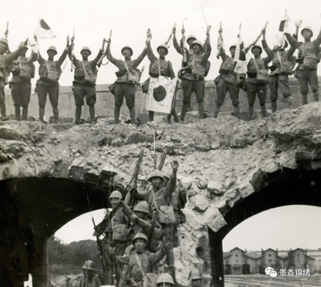 1937年日军侵华现场照片,一切鬼子在铁路桥上耀武扬威地庆祝。其实到了7月30日之时,誓死守城的三十八师的多支部队已经被全部击溃。再加上一直无任何后备支援,其三十八师的代理师长李文田不得不挥泪带着残留部队撤退到郊区。于当天下午,天津沦陷于日寇手中。