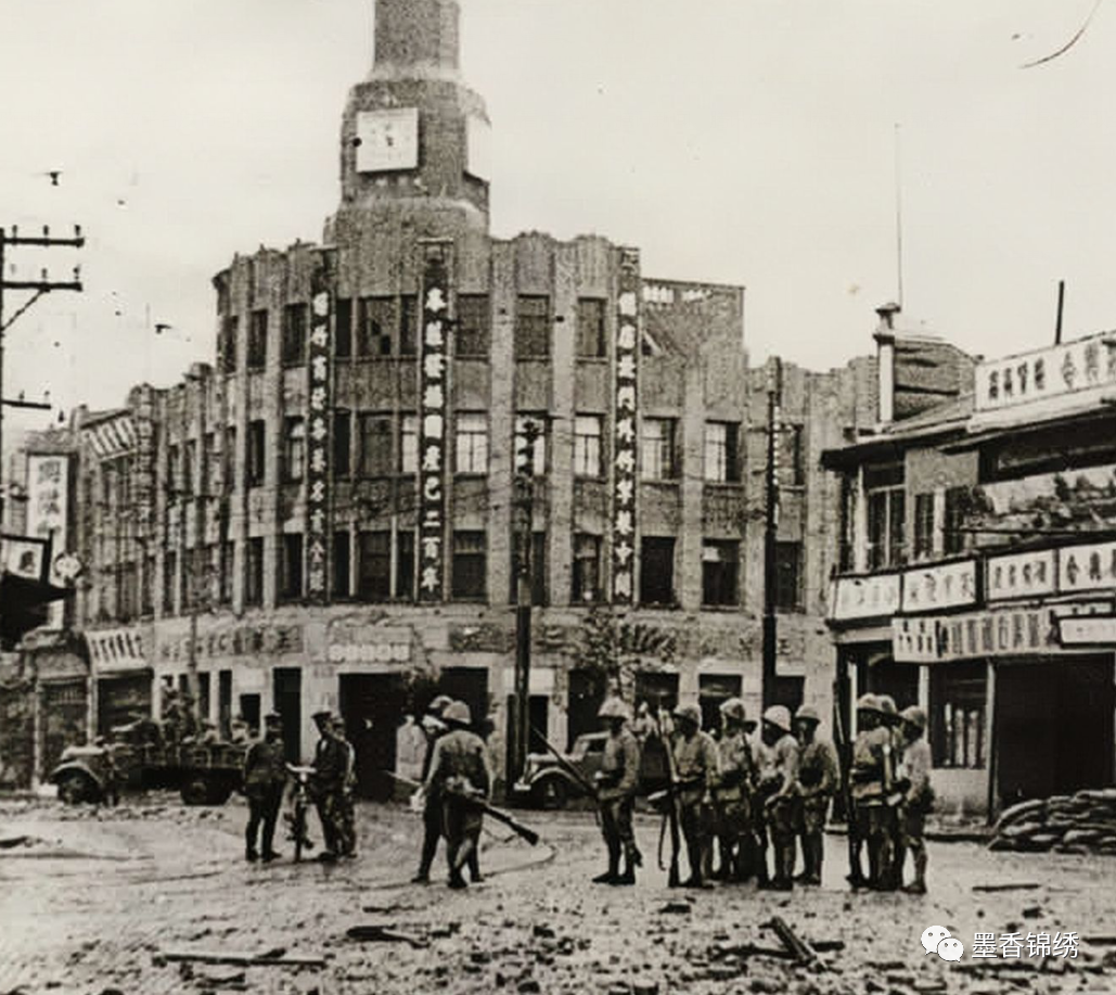 民国时期侵略而来的日军在天津街头占领时旧照。当年的天津抗日战争打响后,一开始日军首先在天津的海光寺兵营与天津火车总站等多次失利。然而后来日军不断地增派援军,而被困在城内的我军第三十八师因前后夹击且孤立无援,从先前胜仗的局势被日军反超打压。