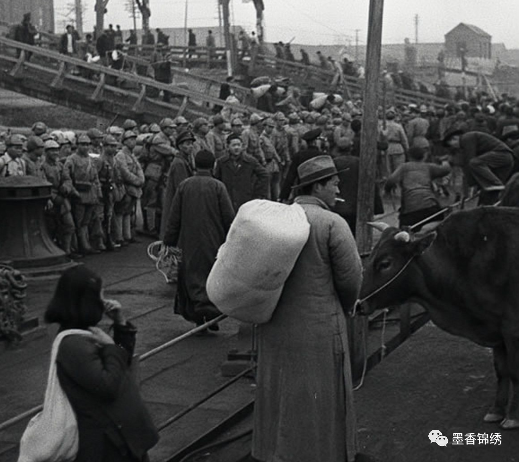 南京的浦口旧时留影,一群国民党军队士兵与百姓们在等待坐船过长江时的留影旧照。于1949年的4月之际,国民党临时总统李宗仁派员和中共进行谈判和平一事,甚至提出了“划江而治”的方针,不愿被共军整编收为己用。而正是国民党一方的此举要求,彻底揭穿了其假和谈的阴谋诡计。
