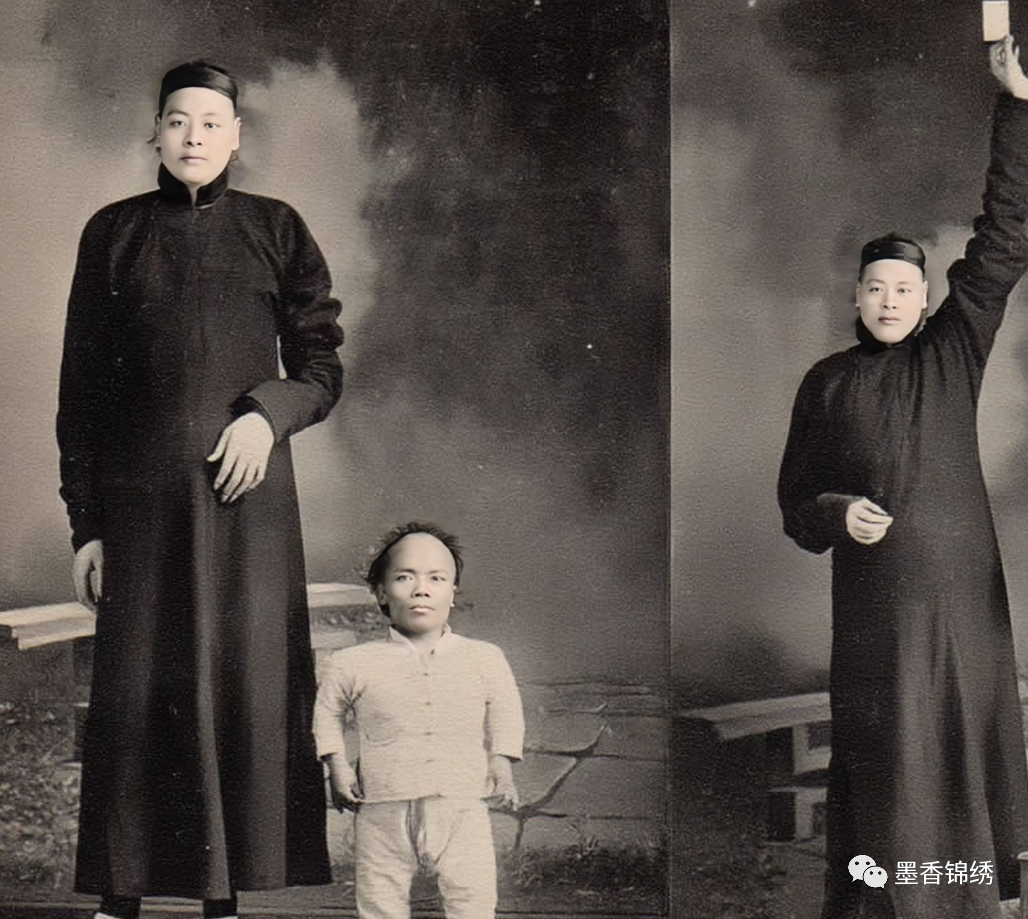 晚清时期一位身高超过两米的乡村巨人与旁人的合影旧照。据悉这位巨人身高有七英尺五英寸,也就是我们现在所熟知的2.26米。古时候的人们虽然普遍生活贫穷落后,但是乡村巨人却亦是不少。而外国洋人正是对此深感好奇,所以经常去乡村挖掘这些身高异常之人,然后重金聘请到杂技团表演盈利。