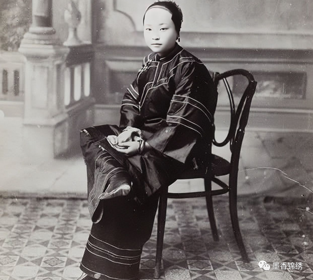晚清年间的青楼娼妓为客人展示三寸金莲时的留影旧照,老照片中的青楼女子相貌恬静美丽,年龄看起来亦不过是十七八岁,应该是穷人家的女儿被无奈卖至青楼为生。