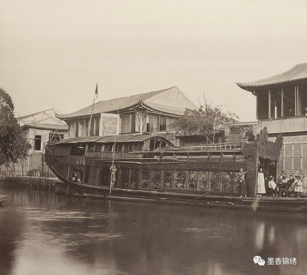 广州一带的河上花船罕见旧照,也就是古时候人们常见的水上青楼场所。于当时的岭南一带,其世代久居水上的居民被称之为“贱民”,也就是地位最低的疍户之人。他们因身份被寻常百姓歧视,又不被允许上岸谋生做事。无可奈何的他们只好让妻女在船上接客,做起了勾栏女子的不堪之事。
