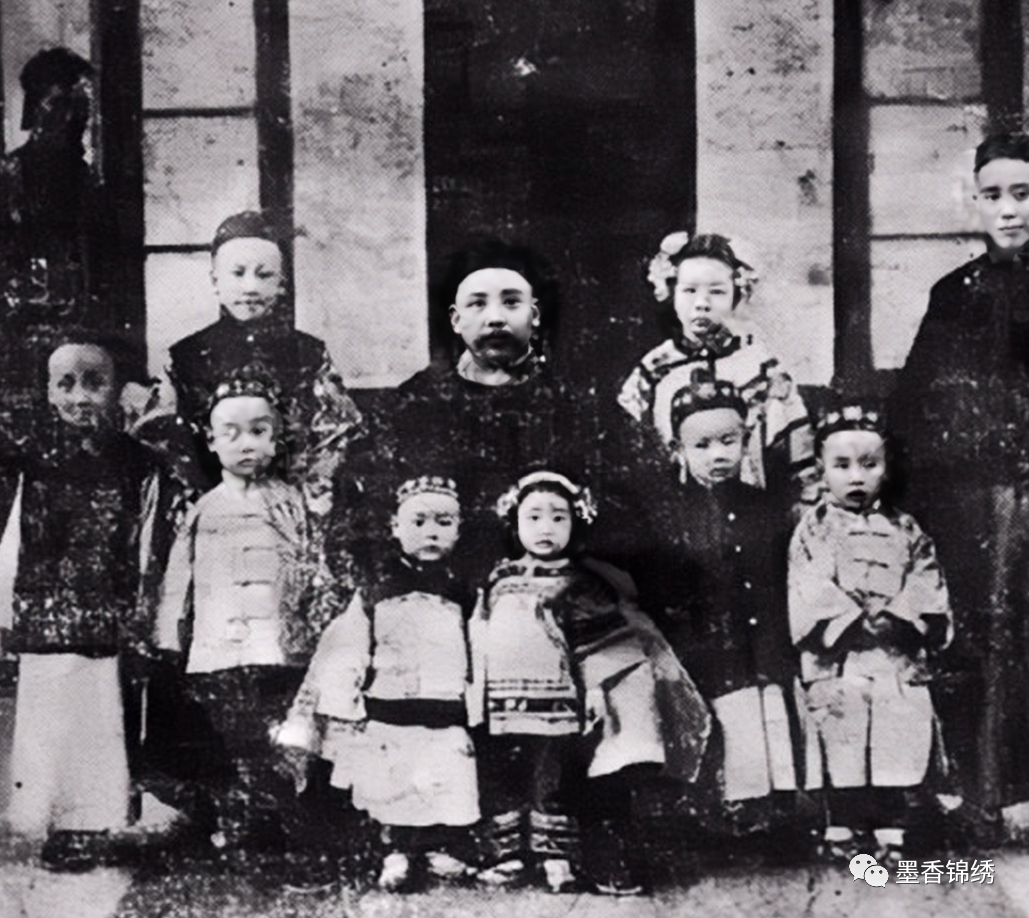 袁世凯和家中儿孙们的合影老照片。袁世凯和原配妻子于氏之间的隔阂矛盾是因为一条红色绣花裤带。那一日,袁世凯办完公事回到家中,刚进房门就看到妻子于氏又寄着平时最喜欢的红色绣花缎子的裤腰带。于是袁世凯就忍不住打趣道:“你这样打扮起来的样子,就像个马班子!”