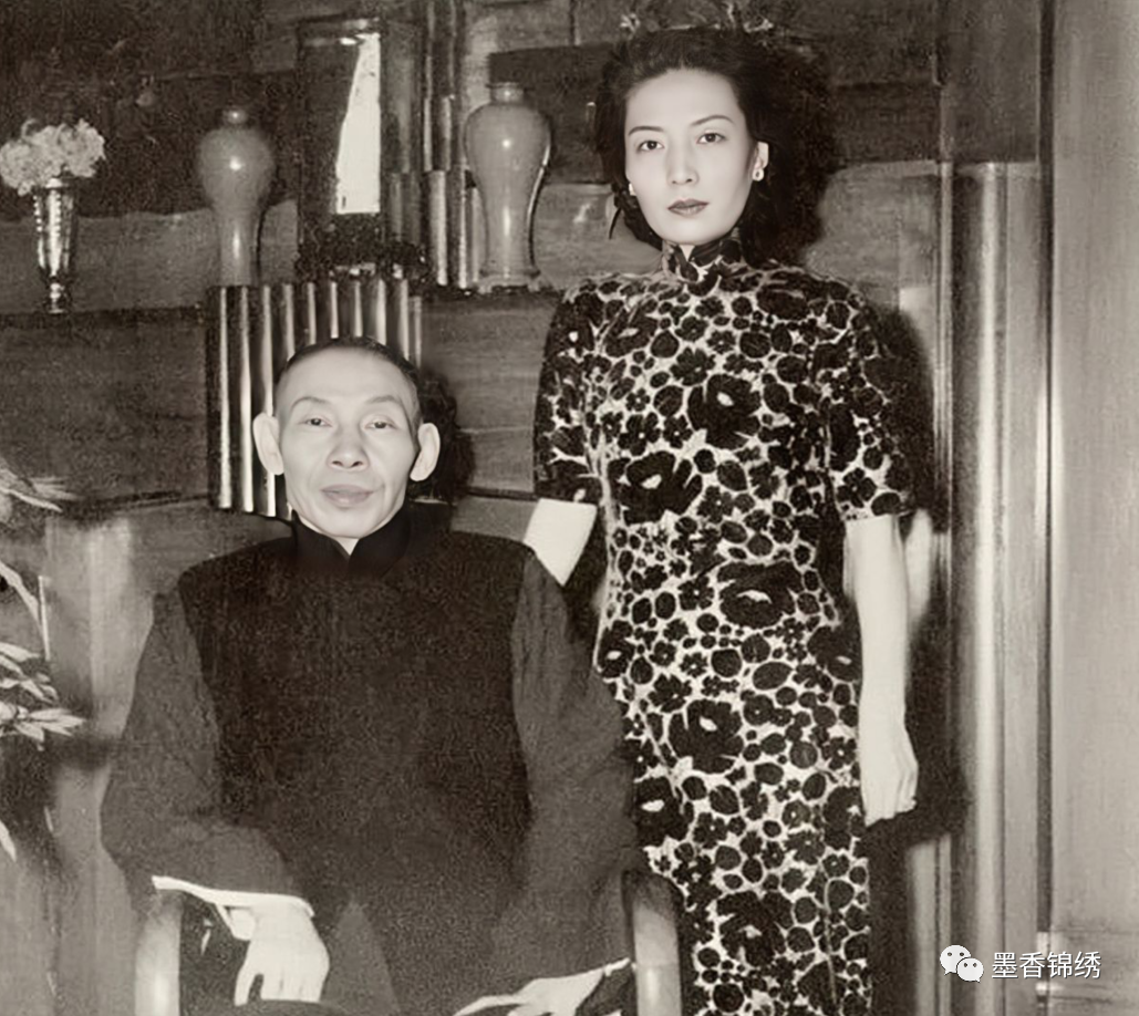 1950年,杜月笙与孟小冬结婚时合影照片。这一年的杜月笙已经病入膏肓,年过百半的他原本不想拖累孟小冬,三番五次让她趁年轻时令觅良人生活。然而固执的孟小冬却不肯离去,日夜不停地守护在杜月笙病榻之旁,亲自喂药送汤,直到杜月笙走完了最后的人生路程。