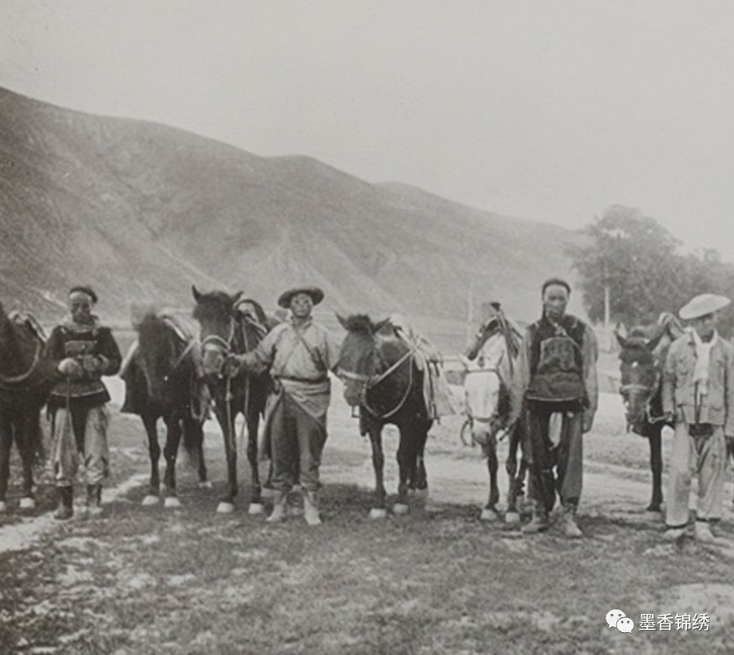 晚清时期朝廷士兵保护美国人罗伯特考察队的场景旧照,当时罗伯特一行人的所到之处,地方官府皆会安排士兵一路跟随保护,甚至为其提供充足的食物与行囊装备。于晚清1909年的盛夏之时,罗伯特的一名队员黑兹拉特在兰州郊区被当地百姓暗杀,最后连其遗体都下落不明。得知此事后的罗伯特愤怒不已,立即厉声谴责当地地方衙门尽快找出行凶之人。不久后,为了保命的罗伯特一行人无奈终止了当地的考察活动,随即从兰州前往老北京城去考察。