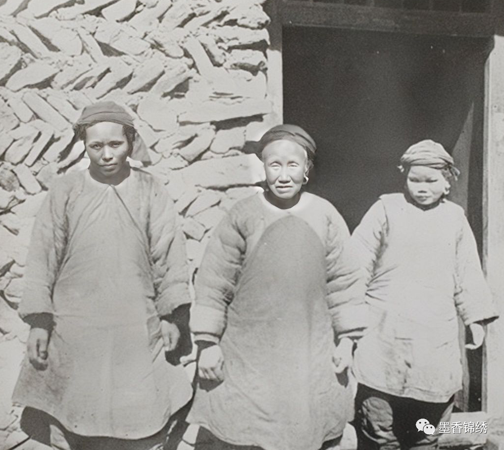晚清时期四川妇女迁移到甘肃境内的合影旧照,老照片中的女子的祖辈乃是因为家贫无地四处迁移,最后移居到了甘肃之地生活,膝下儿孙之辈亦是逐渐成了当地人。罗伯特很好奇她们的生活场景状态,于是做了详细的游记撰述,甚至还拍下了一组农家妇女们的肖像旧照。