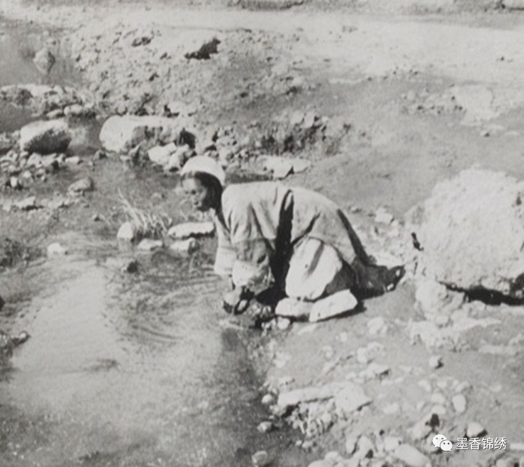 晚清末年山西一带农家妇女趴着跪在河边洗衣服的留影老照片,当时的百姓们普遍家中一贫如洗,有的人常年都吃不到一碗白米饭。不过罗伯特发现一个奇特的现象,即便当地的百姓贫穷不堪,但是其男子们皆都生得高大壮实,而女子们则又非常的轻灵秀美。
