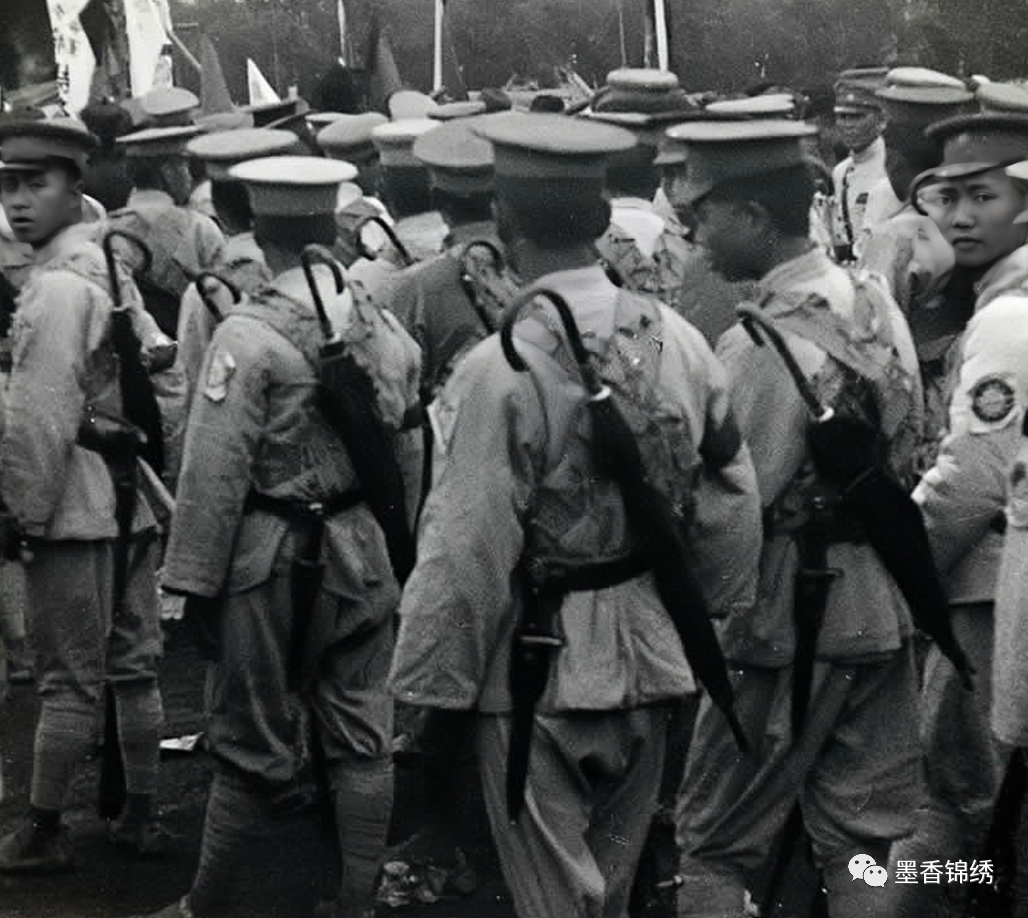 1927年的北伐军留影老照片。自蒋介石率军占领了江浙一带后,深知此地为财赋重地的他暗喜不已,于是随即联络当地的经济实力雄厚的各大财阀,积极将此地变成他的“金库输入地”。以此来充实、扩充自己的政治、军队、人脉资本。