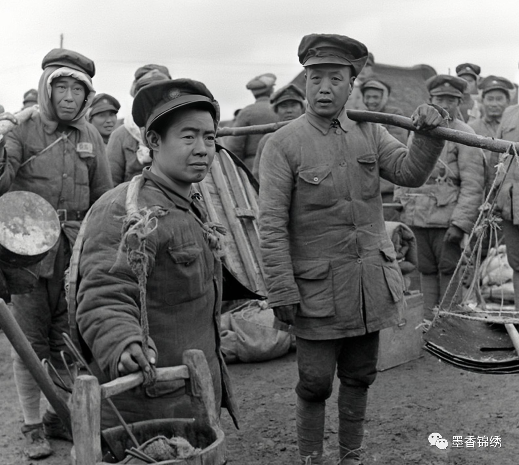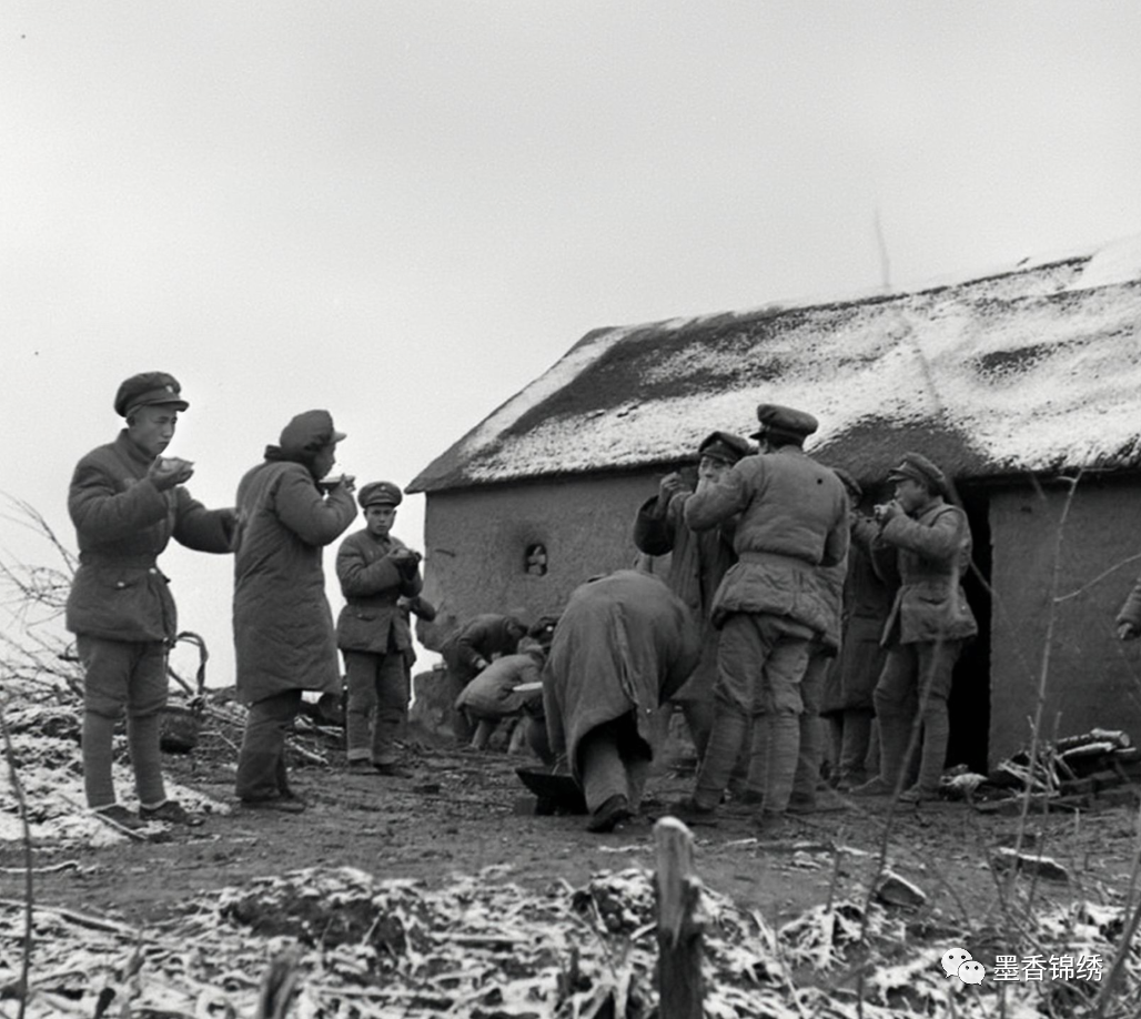 国民党的士兵们在冰天雪地里吃窝头是真实老照片。后来战争结束,国民党军官的第77师的师长田君健因无颜面对蒋介石,以及害怕连累下属及家人,于是随即在战场上挥剑自杀。而剩下的残部要么被俘虏,要么则是慌张狼狈地遁逃而去。