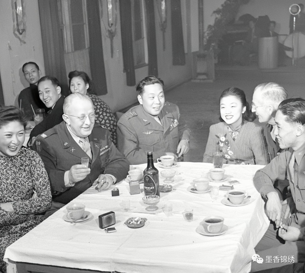 民国时期,一群国民党军官与年轻美女们寻欢作乐、谈笑风生的现场老照片。虽然当年的国军在战场上接连败退、溃不成军,但是其中很多国民党军官依旧无关痛痒地沉醉于灯红酒绿的娱乐、奢靡生活中。