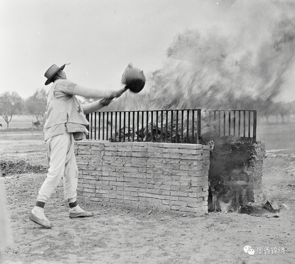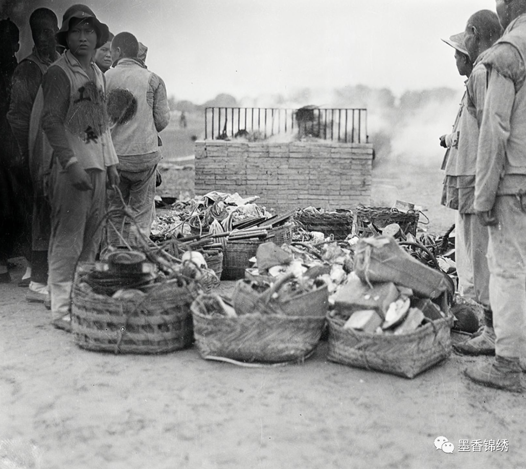 北洋政府的官员们在视察鸦片烟土销毁时的工作老照片。摄影师西德尼在《北京的社会调查》一书中记录了当时禁烟真实状况。彼时的北洋政府统治期间,其京师步军统领衙门在北京各地都设置了关卡,甚至每一道城门、城外防区皆有步军们前去盘查,遇到私藏、或贩卖鸦片等毒品者,若非达官贵人、权贵大户,其他人一律缴获,事后并及时公开销毁。