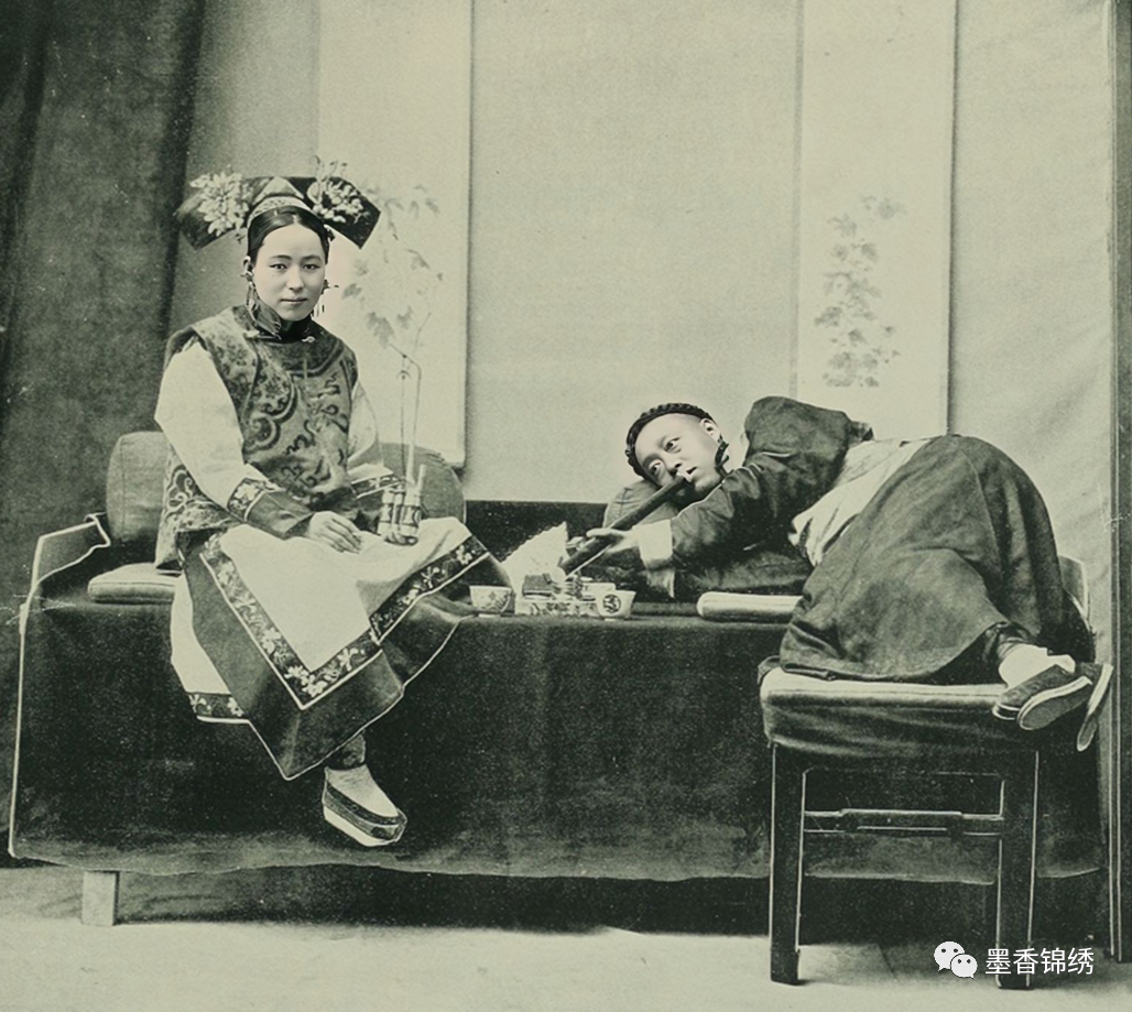 民国时期的青楼娼妓陪客人吸鸦片时眼神迷离老照片,北洋政府的工作人员当场将其抓获。除了销毁搜捕到的鸦片烟土以外,同时亦将大量的吸食毒品工具亦是砸毁一空。