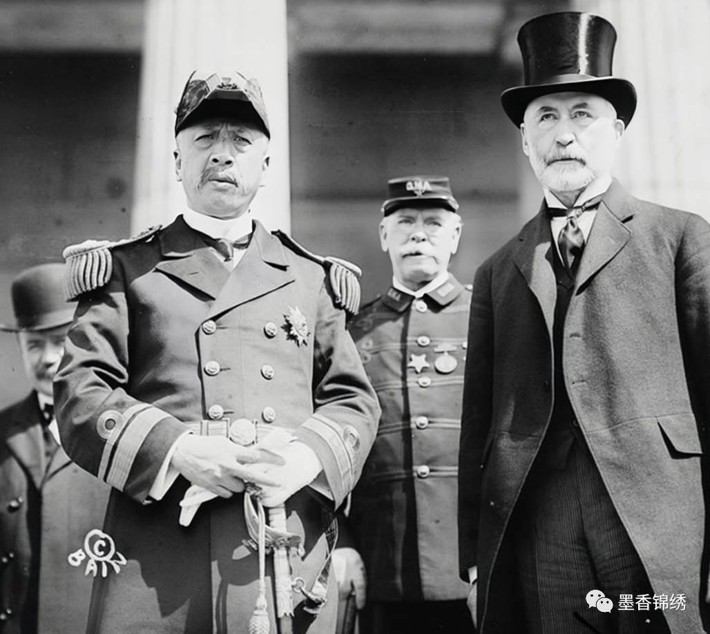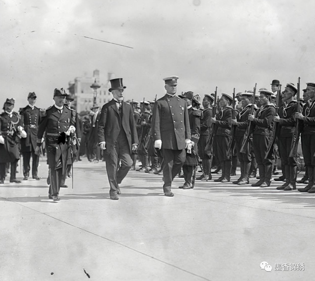 晚清的海上将军程璧光与美国纽约市长梅尔一同检阅海圻号官兵。清朝海军的此次出访,皆受到了英国与美国最高规格、最为隆重的接待礼遇,而此事在清朝260多年的外交历史上,却是独一无二之特例大事件。虽然当时晚清的海军军舰战斗力究竟如何不得而知,但是此次受到欧美大国的接待却是极其荣耀、盛誉。