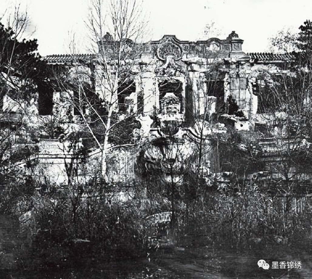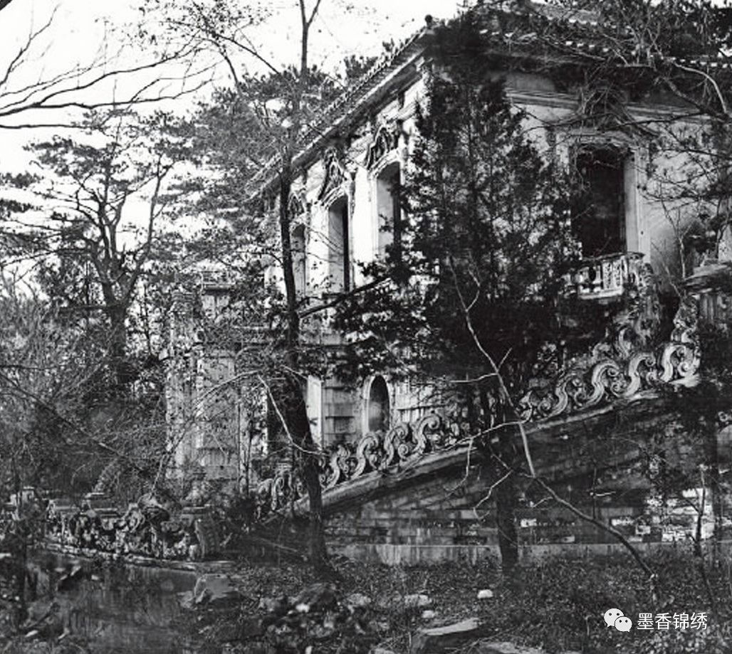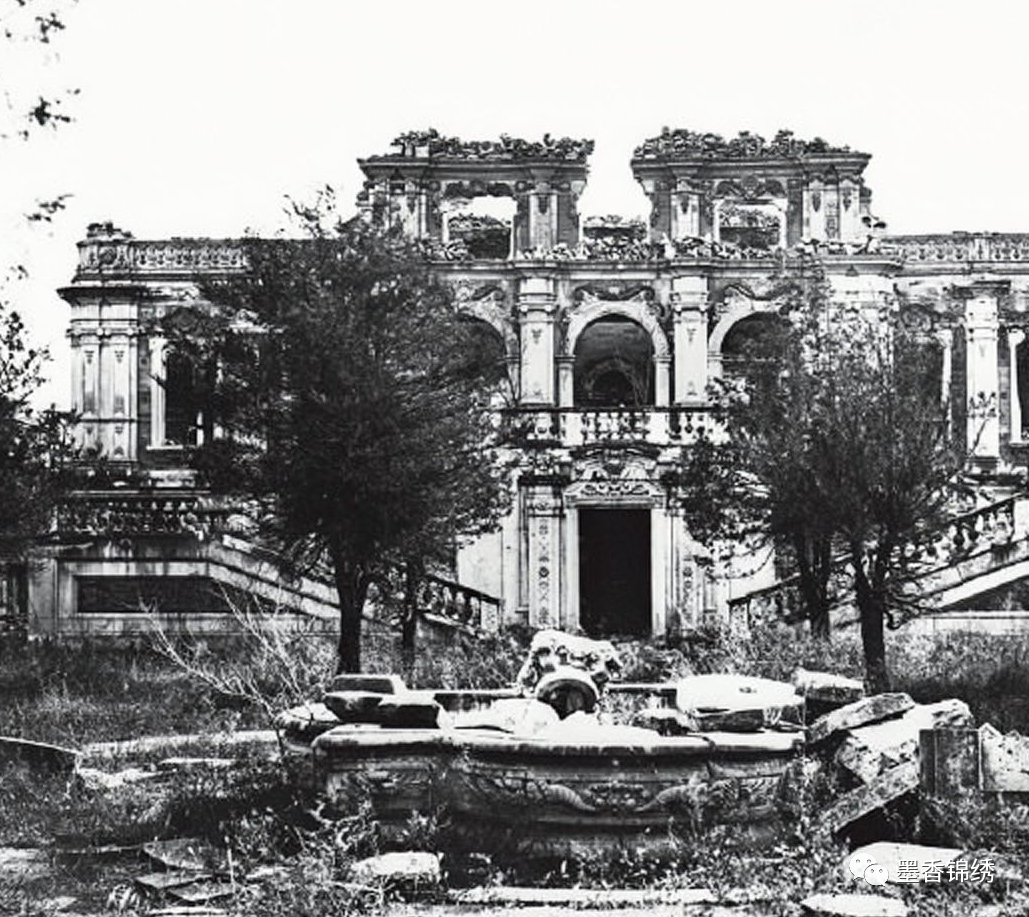 被八国联军烧毁后的圆明园内谐奇趣主楼的昔日照片。当德国摄影师恩斯特等人进入圆明园拍摄奇遗址同年,晚清的同治皇帝亦是决定下旨重修圆明园。于1874年之时,同治皇帝正式命人开工修复。然而没想到于十个月后,因彼时清廷财政国库空虚枯竭,朝中一众大臣皆奋声反对,最后圆明园的修复工作无奈停止于此。
