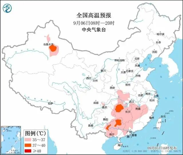 例如:在四川东部、重庆、贵州东部、湖南、江西、湖北多地最高气温将超过35℃,局地达到38℃以上。所以,这6省市是主要的覆盖区域,大家需要注意。