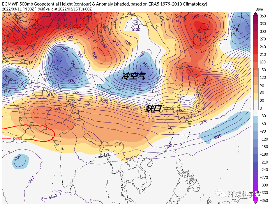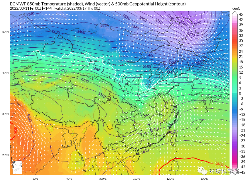 什么情况?倒春寒来了?从超级计算机的情况来看,在3月15日的时候,我国北方出现了“紫色冷气团”活动,其实从根源上来说,这一波冷空气早在我国西部方向形成,只不过我国受到“暖流”控制,一直被顶在内蒙古以北地区发展,而到了3月15日的时候,暖气流的“缺口”出现了,这个时候的冷空气就有进入的机会了。