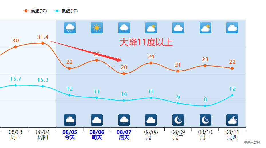 例如:黑龙江塔河,最高温度将会从31.4度降低到最高20度,直接大降11度以上,而最低温度也会在7度左右进行徘徊。所以大家过得是夏季,而东北部分地区将会进入到“凉秋”了。是真的要变冷了。