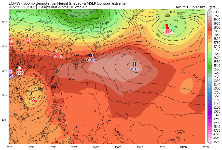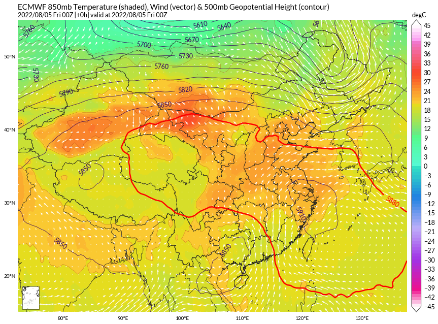 所以,大范围地区还是以热为主,这个没有什么质疑的。主要原因很简单,就是西北太平洋地区的副热带高压太强了。