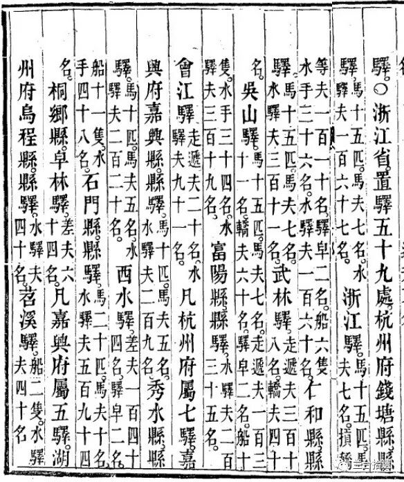 两者变化最大的,就是《嘉庆会典》的作者将《盐驿道册》中的“某某县”一律改成了“某某县县驿”,《嘉庆会典》一书,仅浙江就陡增了31个新“县驿”。就全国而言,《嘉庆会典》一夜之间给全国增添了上千个新驿站。