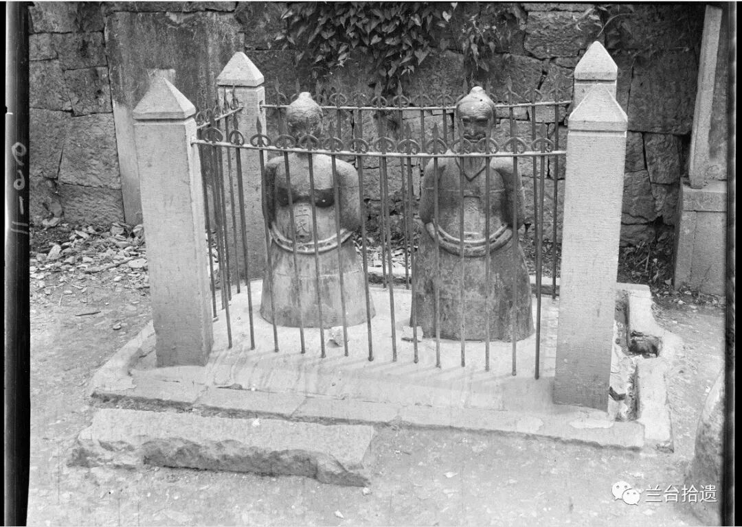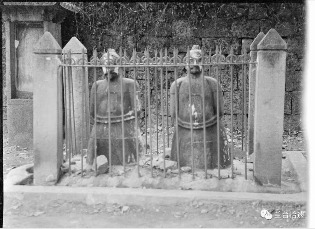 甘博的照片显示,墓阙修缮一新,奸臣铸像也重新做了更换,原来的囚笼式石头围栏,全部更换为水泥柱配铁栅栏,富有民国现代气息。