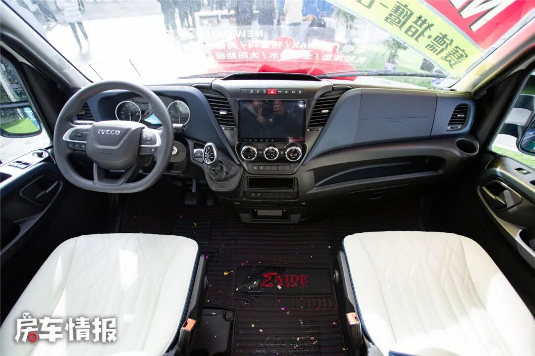 动力上这款车搭载的是一台进口依维柯3.0T柴油发动机,最大功率达到134kW,最大扭矩430N·m,匹配一台采埃孚的8AT变速箱,满足国六排放,这套动力总成在动力参数上可以说是目前同类型车中最强动力总成了。