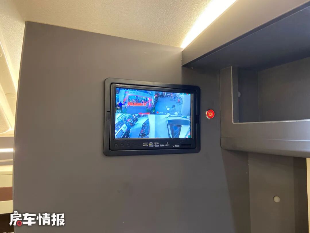 乘客区前方的区域被设计成了更加实用的小储物柜,平时可以放雨伞或者拖鞋。储物柜上方还提供了四路监控,平时驻车时可以更好的观察车辆周围的情况。