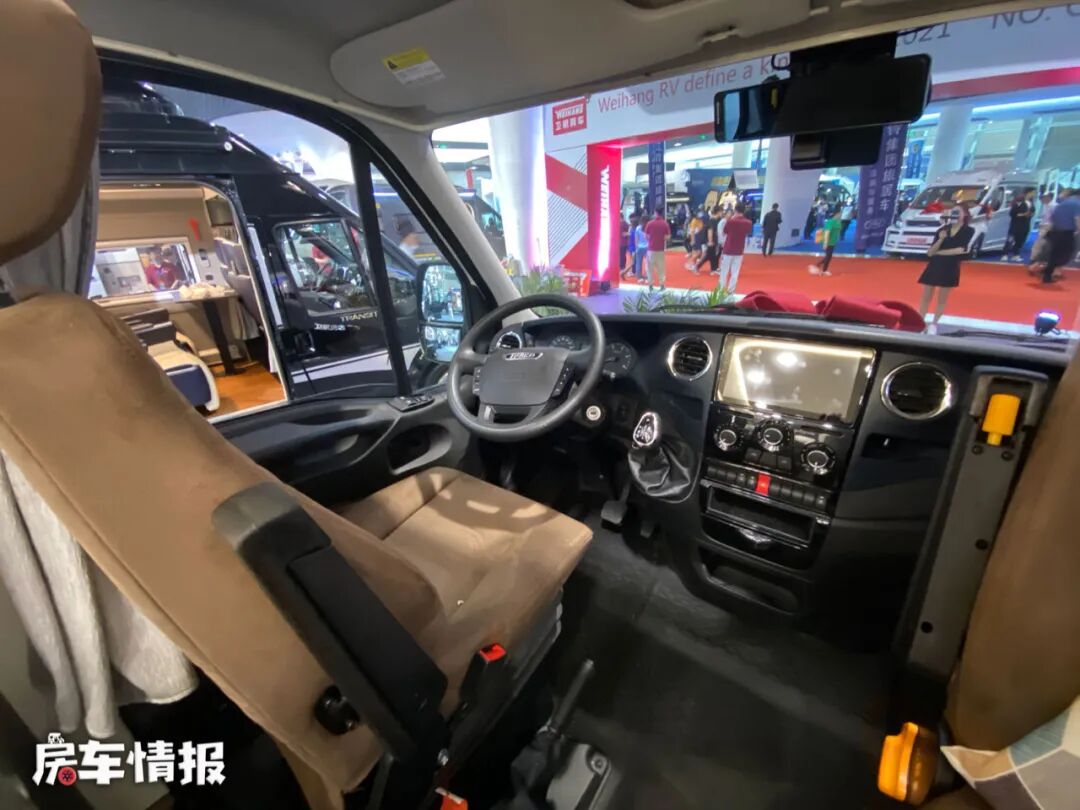 驾驶室的悬浮式主副驾驶座椅都采用了绒布软包材质,更加的亲肤,副驾驶还加入了可旋转的功能,除此之外,还配备了多功能方向盘、10英寸高清触控大屏。