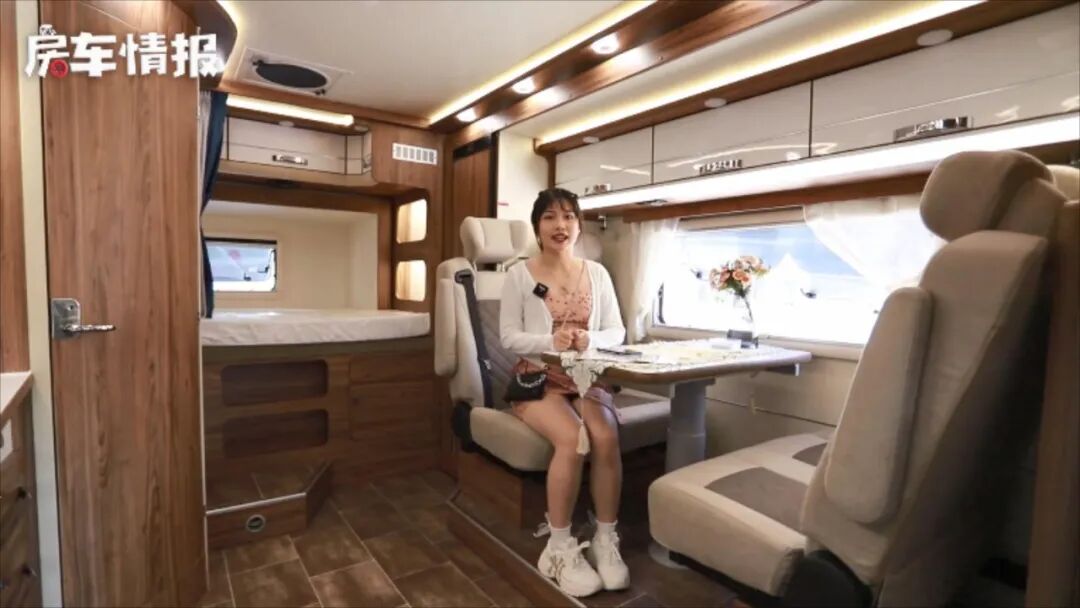作为拓锐斯特最新的产品序列,旗下产品全部采用了星系命名,给人的感觉挺高级的,今天我们要来看的就是一款天王星2号房车,这款房车整体设计比较豪华,双拓展设计能够保证车内拥有足够的空间,精致的家具也在很大程度上提升了车内的档次感,四人对坐沙发采用乘用车座椅,日常乘坐更舒适同时也更安全,车尾部拓展开的双人床尺寸比较大,床位开口也挺不错,日常上下床都比较方便,更多详情来看视频吧~