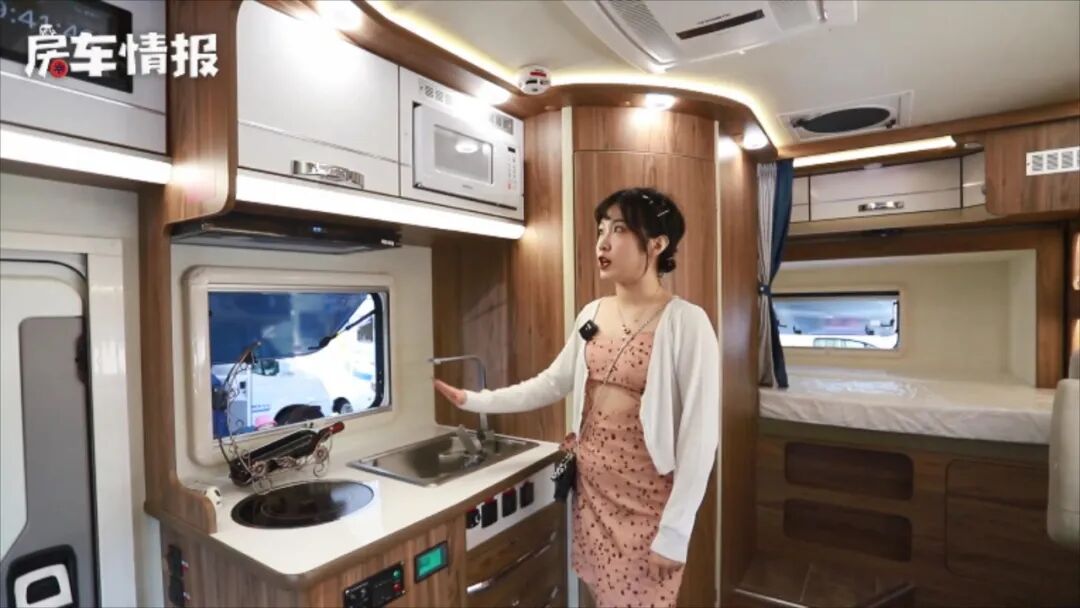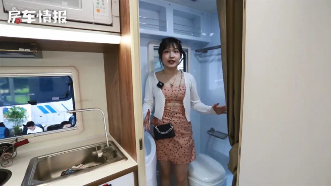 漂亮表妹发现新款拓锐斯特房车,12度电带发电机,300升水箱全家洗澡够用