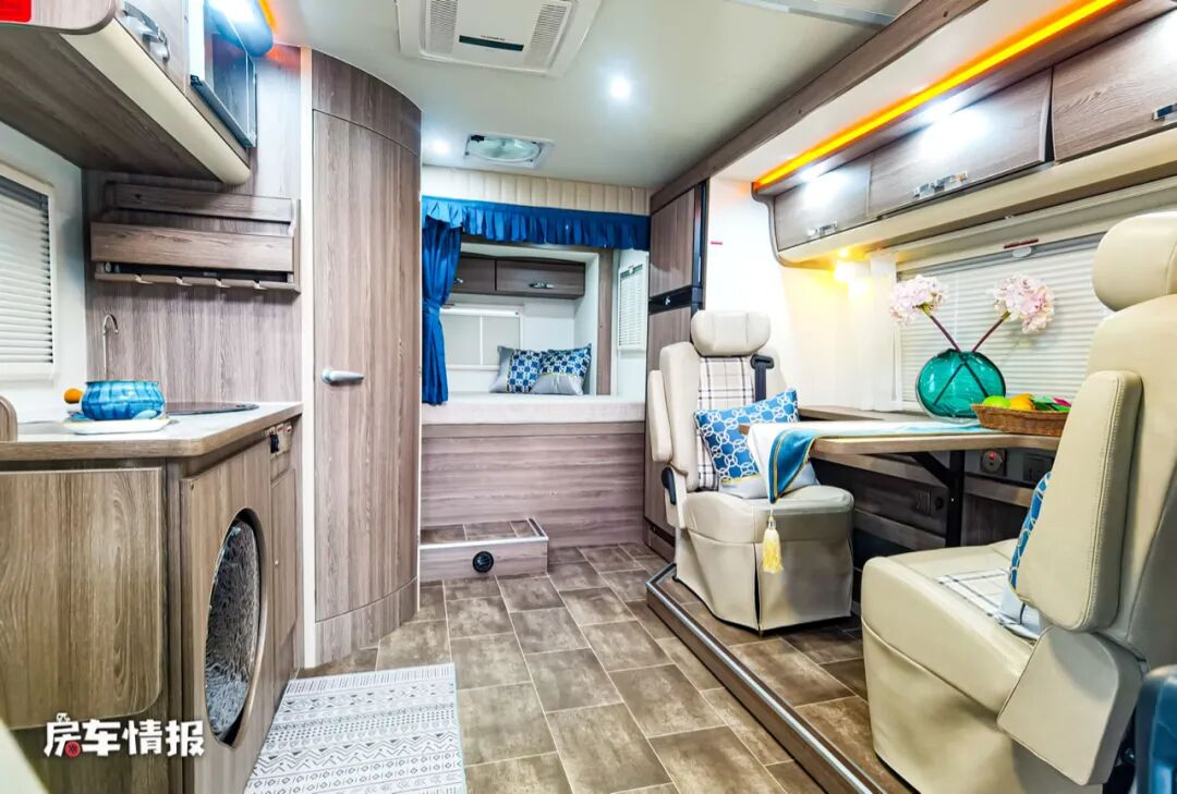 动力上,这款房车搭载了一台3.0T的柴油发动机,匹配8AT变速箱,最大功率为132kw,最大扭矩为430N.m,采用前扭力梁悬架+后空气悬架的方式,满足最新的国六排放标准,平时持C本就可以驾驶。