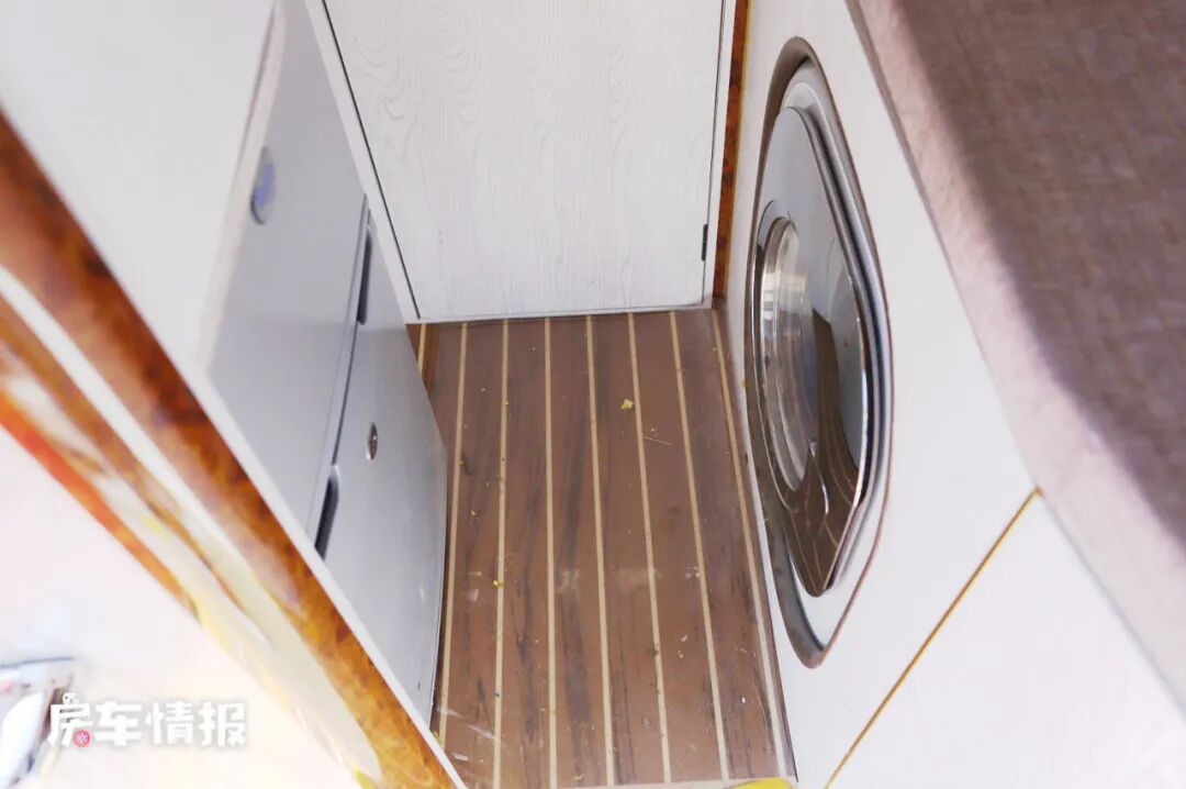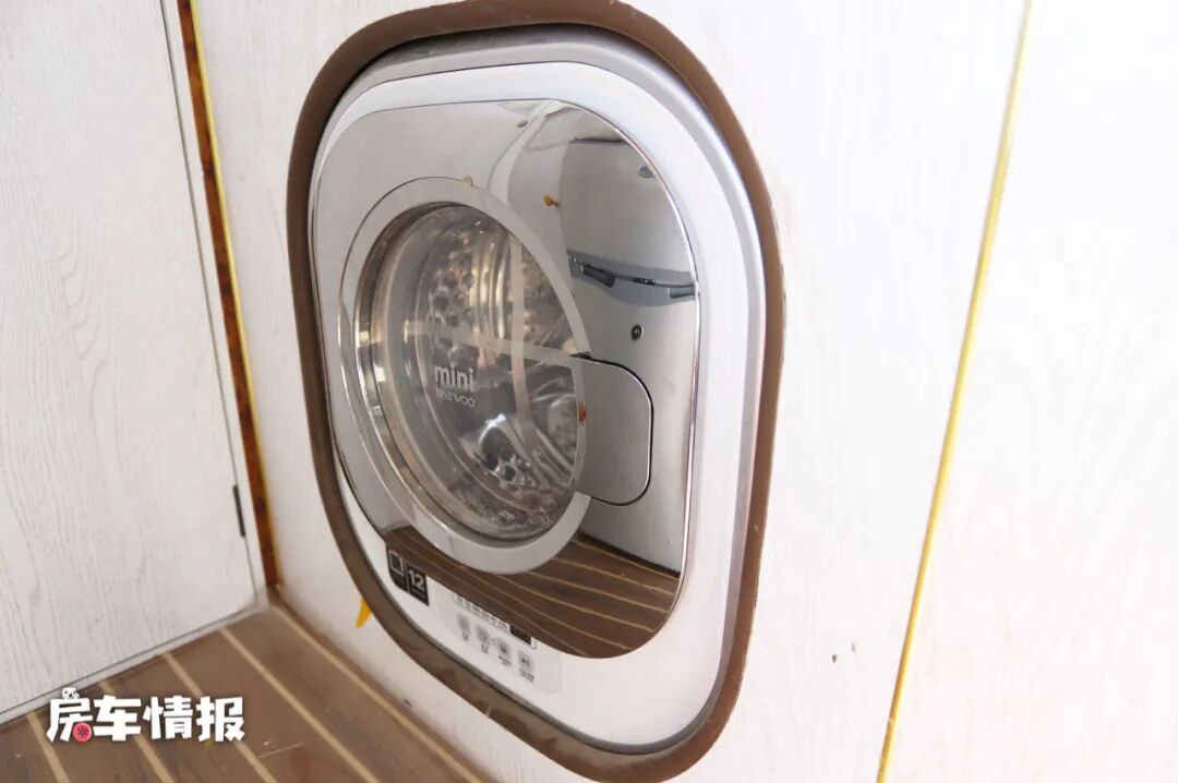 床铺的下方暗藏了一台小型的洗衣机,平时可以洗一些小型的衣物。