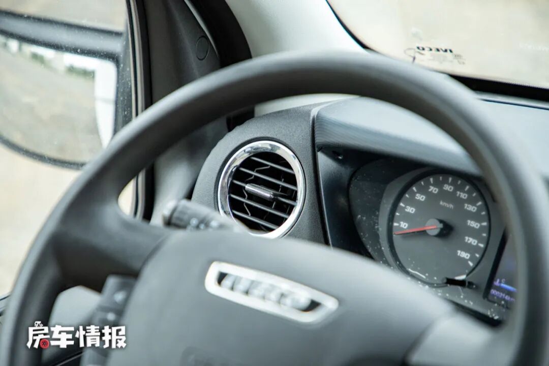 全车的外形尺寸分别为5990mm*2515mm*2990mm,轴距为3300mm,和老款的尺寸一样,所以也满足上蓝牌的规定,另外因为整车采用了小顶的设计,所以具有更加良好的通过性。