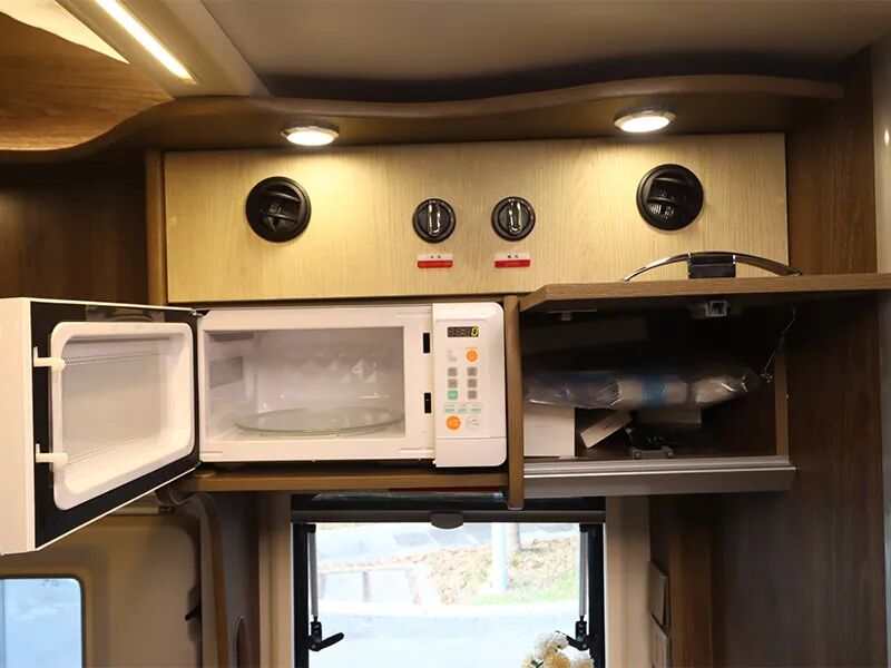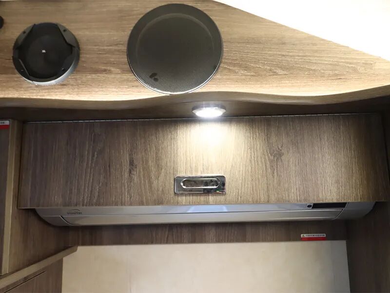 位于车厢中门上方,还“隐藏”着一台来在三菱重工的1.5P直流变频空调,出风口也是正对着生活区和卡座沙发区,能够给车内提供比较充足的冷暖风。除此以外,在取暖制冷系统方面,这款房车还提供了卡洛西行车冷风以及伟巴斯特的驻车燃油暖风,满足在各种场景下整车的取暖制冷。