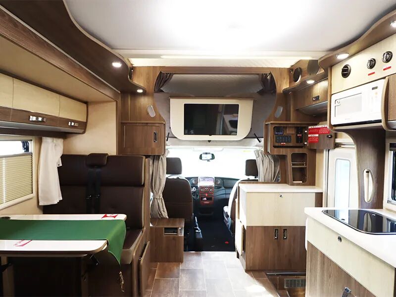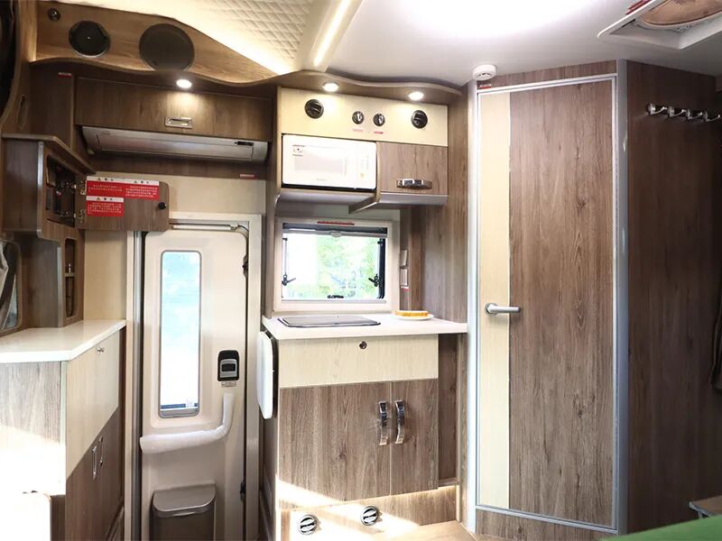 来到生活区,布局比较常见,但在细节上的设计别有用心,另外得益于车身左侧和尾部的拓展舱,生活区的空间表现很不错,日常使用在车内活动也不会感到局促。