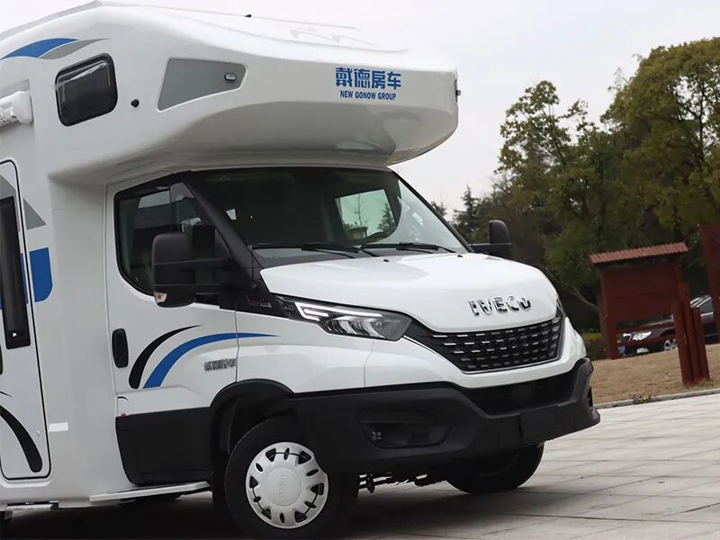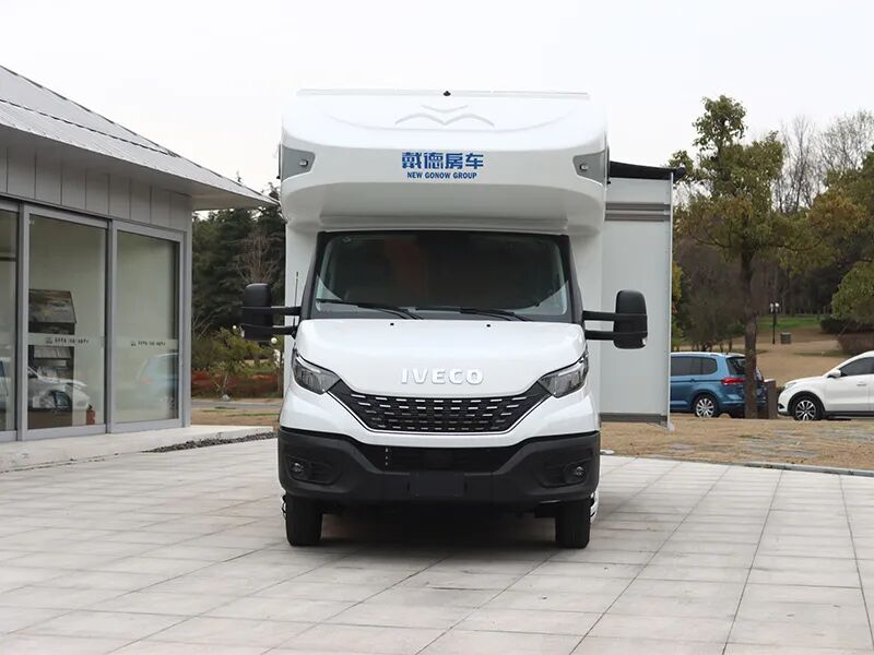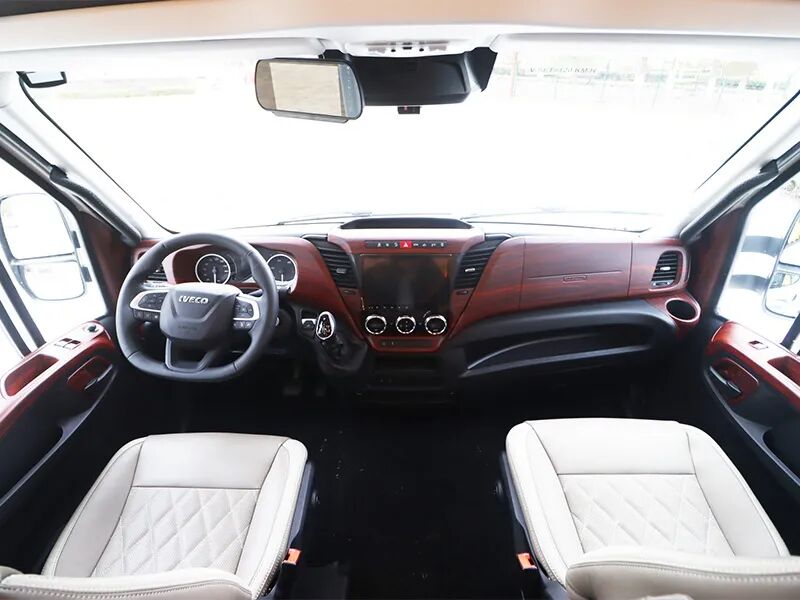这款房车基于进口依维柯NEW DAILY打造而成,为此整车定位相较于国产依维柯欧胜系列房车,定位要更高端。体现在外观上的不同之处就是车头造型设计上,狭长的前大灯组看起来比较凌厉,与点阵式中网融为一体,提升了车头的横向视觉感受,看上去更加威猛霸气。