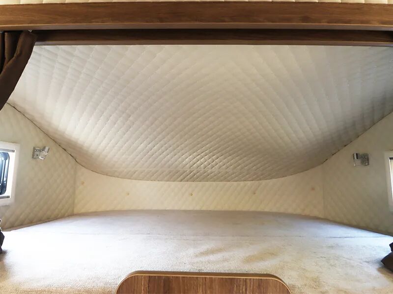 位于驾驶室顶部依然是一张额头床,尺寸达到了2180*1500mm,可以轻松睡下两名成年人,床板下方依然是一台隐藏式互联网智能电视,便于坐在车内观看电视节目。