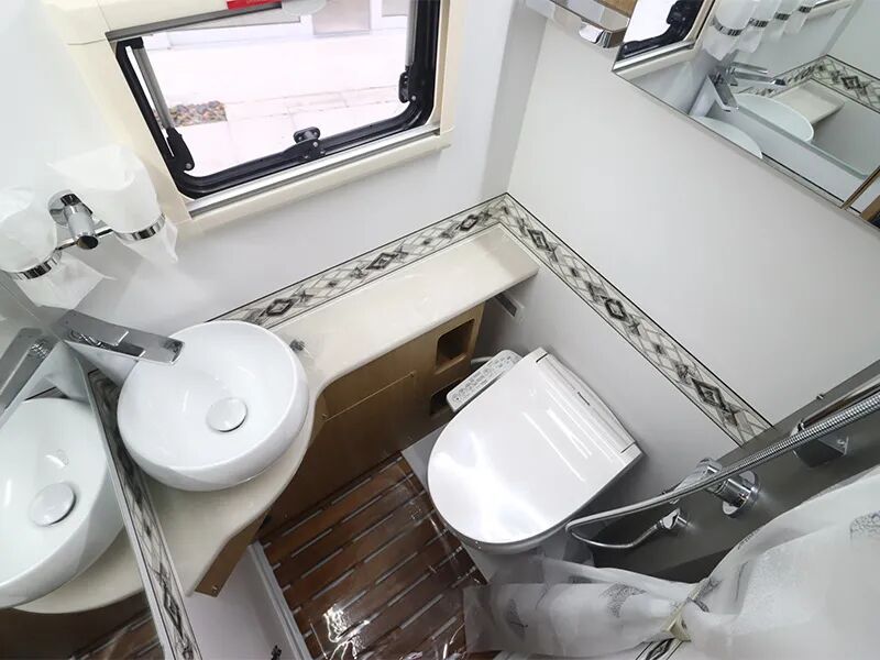 整车依然采用大额头的C型房车设计,车身使用了第二代五层保温热断桥墙体设计,局部厚度能达到10cm,提升了整车的保温隔热能力,再加上车身使用的游艇免漆工艺,在美观性上十分耐看,同时也保证了长时间使用后车身的整洁度。