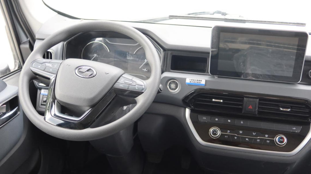 网红2号新车内饰采用了简洁的设计风格,驾驶室部分三辐式多功能方向盘也采用了软性材质包裹,手感出色。大尺寸中控屏顺应时下潮流,同时也保留了空调实体控制按钮,大大提升了盲操作的便利性和安全性。