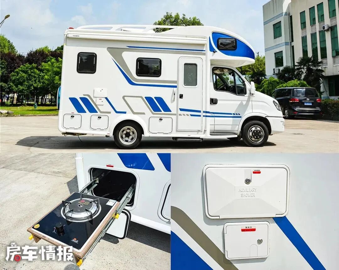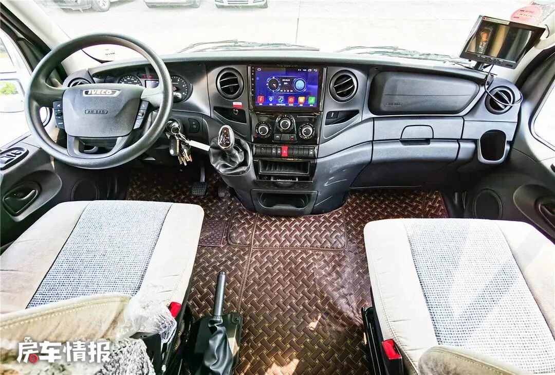 动力上则依然搭载的是一台来自南京依维柯的3.0T柴油发动机,最大功率125kW,最大扭矩400N·m,匹配一部采埃孚8AT变速箱,满足国六排放,在安全驾驶辅助系统方面,这款车还带哟四路监控、ESP、车道偏离辅助系统、底置双发电机等,主副驾驶座椅均采用悬浮式座椅,日常行车乘坐更舒适,副驾驶座椅驻车后还可向后旋转,与后方形成对坐行式。