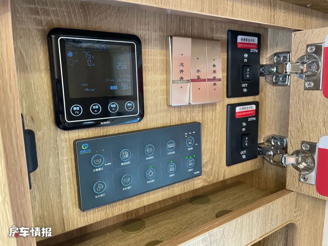 另外,全车都带有房车智能APP控制系统,平时可以通过手机APP就可以观察整车的水电使用情况。