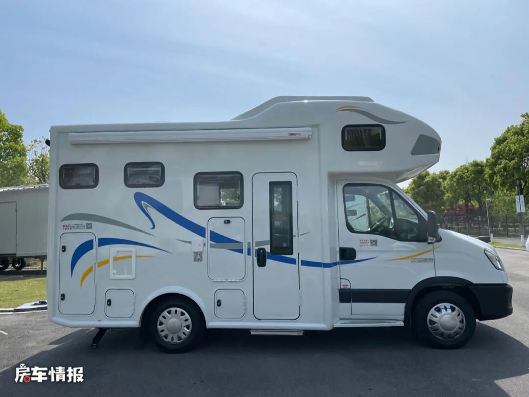 这款搭载了依维柯欧胜底盘打造的房车,全车的长宽高分别为5990mm*2490mm*3180mm,大额头的造型设计也非常的有辨识度,不到6米的车身长度,也满足可以上蓝牌的规定。