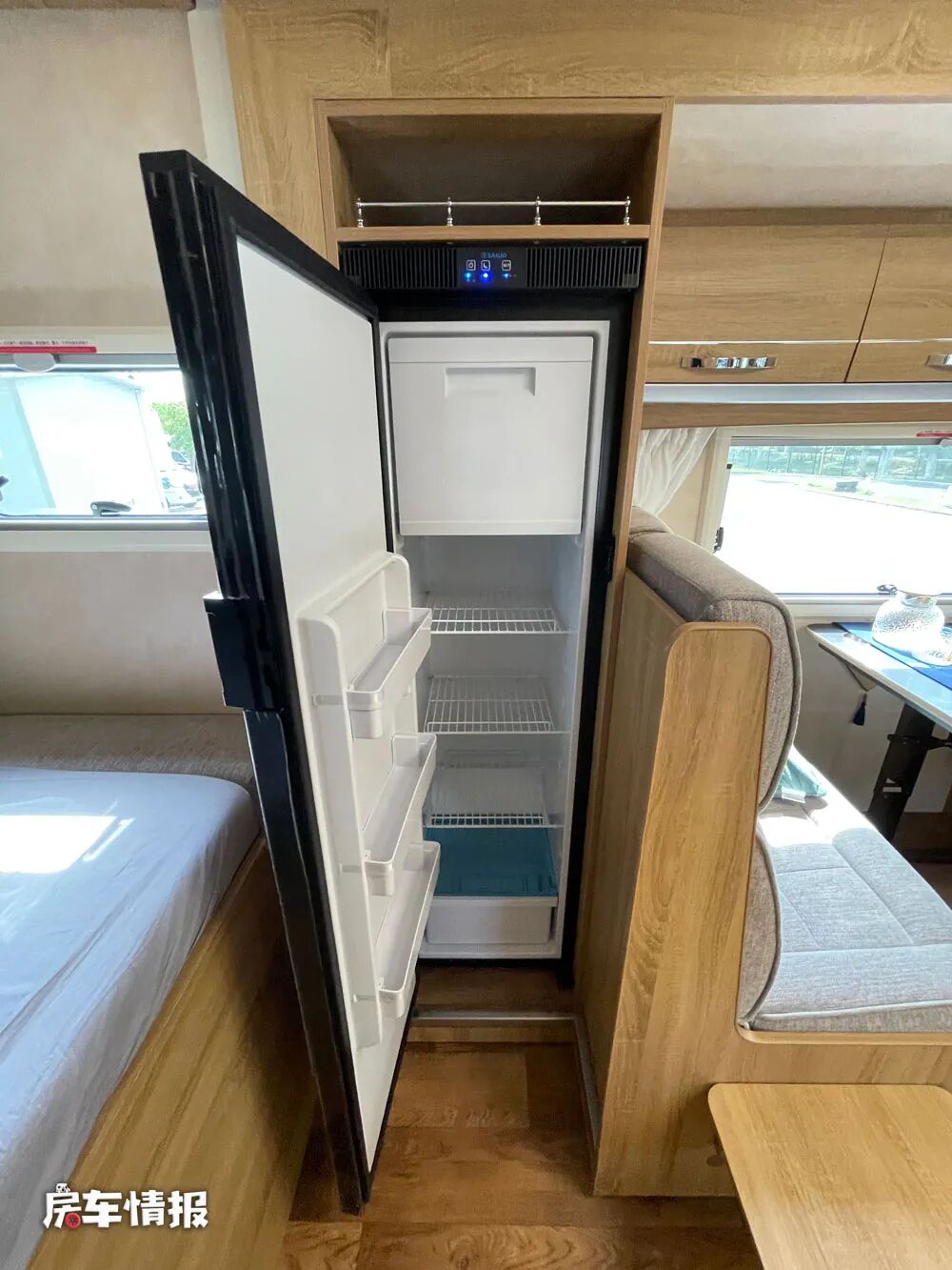与卫浴室相对的是一台150L大容量的冰箱,足够存放一家人的食物。