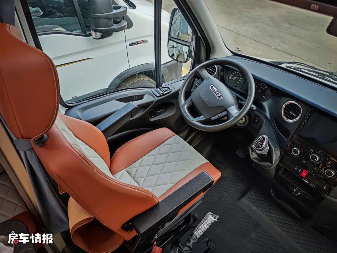 国六版的依维柯底盘还标配了双发电机、多功能方向盘、胎压监测、车道偏离预警和车窗放夹等功能,另外全车的主副驾驶座椅都升级到了悬浮式的座椅,大大提升了驾驶体验,